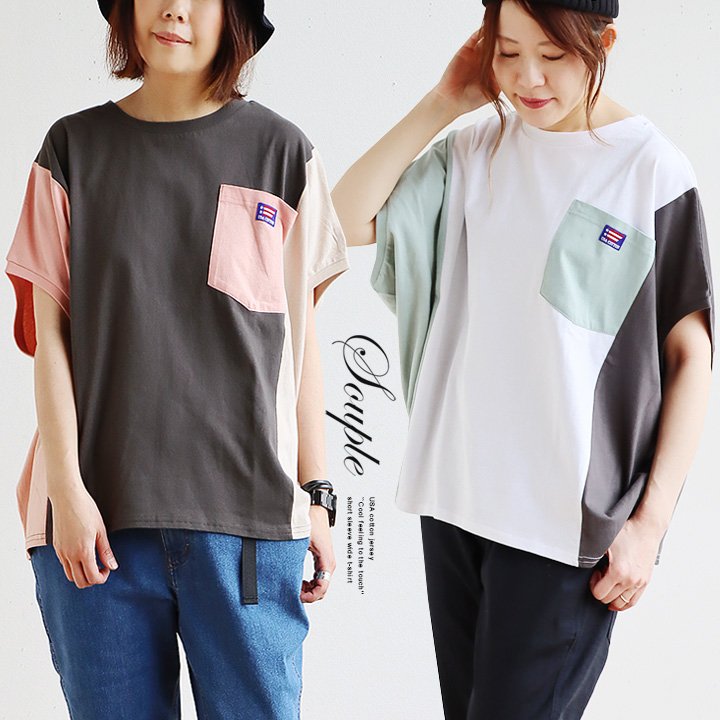 ワイド tシャツ 着痩せ レディース 半袖 ドルマン 夏 しっかり 丈夫 綿100% USA コットン 冷感 オーバーサイズ 二の腕 カバー クレイジー 落ち感 大人 カジュアル パティ Souple スプル 【メール便50】