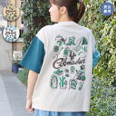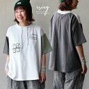 レディース Tシャツ レイヤード風 サガラ刺繍 コットン100% iriey アイリー シャツレイヤード オーバーサイズ ドロップショルダー カットソー 半袖 5分袖 肘丈 ワッペン プリント ブラック カーキ クレイジー K42014 春 夏 秋 ラッピング無料 夏 夏休み 旅行