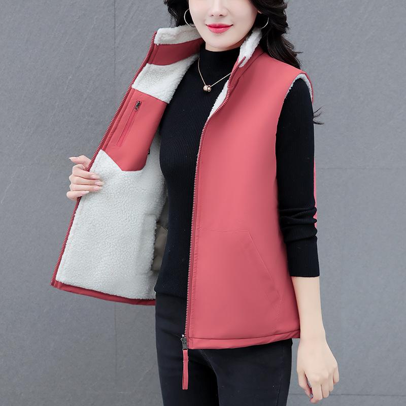 ベスト レディース 秋冬 フリース リバーシブル あったか ジップアップ スタンドカラー チョッキ アウター 羽織り ゆったり 普段使い 部屋着 アウトドア ブラック ピンク系 ベージュ