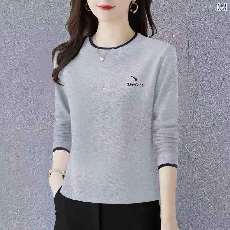 春夏秋 綿 長袖Tシャツ レディース 綿 ラウンドネック レディース 秋 ストレート ショルダー ロングスリーブ Tシャツ 春秋 韓国 ゆったり カジュアル プルオーバー レイヤリング シャツ