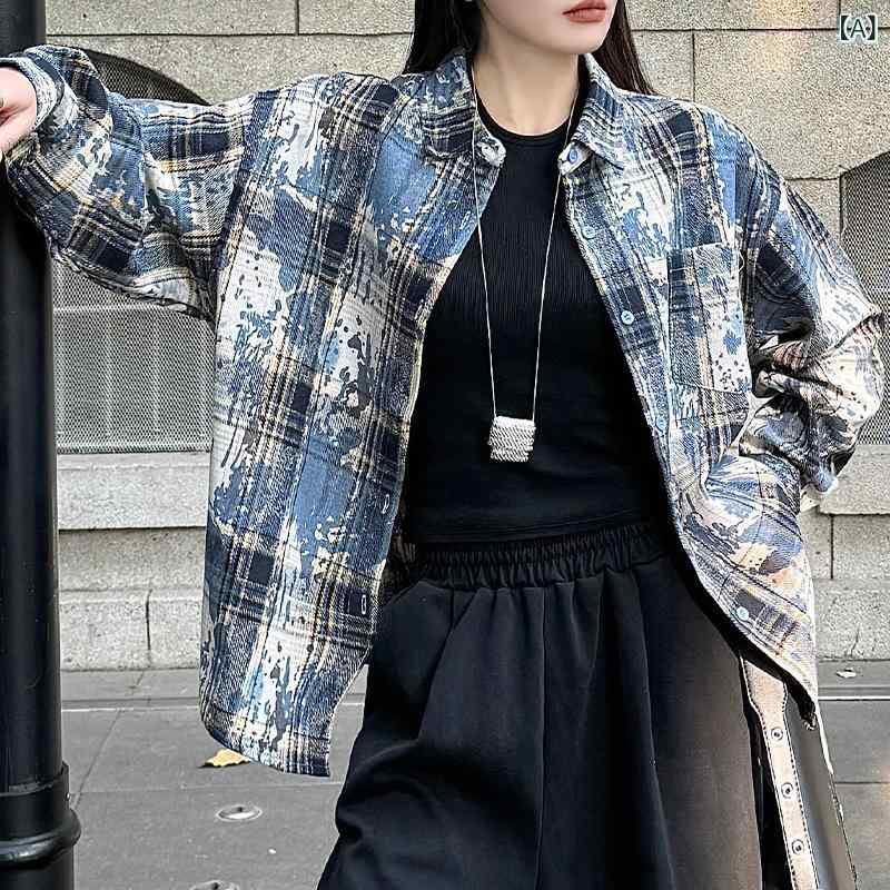 ・カテゴリ: シャツ・スタイル: レトロ・主な素材: ポリエステル50~70%・ネックライン: 襟付き・袖丈: 長袖・袖タイプ: レギュラー・柄: チェック・フィット: ルーズ・丈: ミドル丈・前立て: シングルボタン・ディテール: ポケット・加工: タイダイ・サイズ展開: M, L, XL, XXL