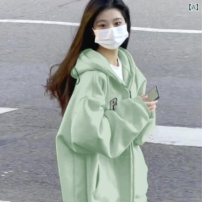 パーカー レディース 春秋 ジップアップ スウェット フーディ 薄手 裏起毛 カジュアル かわいい 韓国風 ファッション トップス S M L XL XXL グリーン 緑 杏色 ワインレッド ブラック 紺