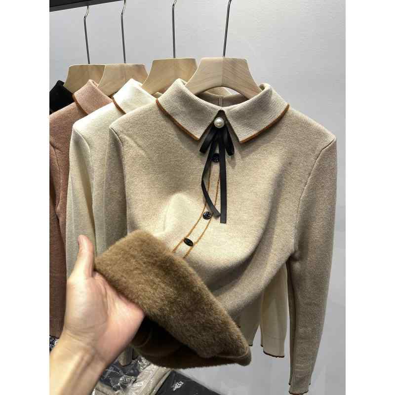 レディース ベロアトップス 長袖 デコルテの 蝶 結びの 半高 襟の 修身は 底の 上着を 打ちます。