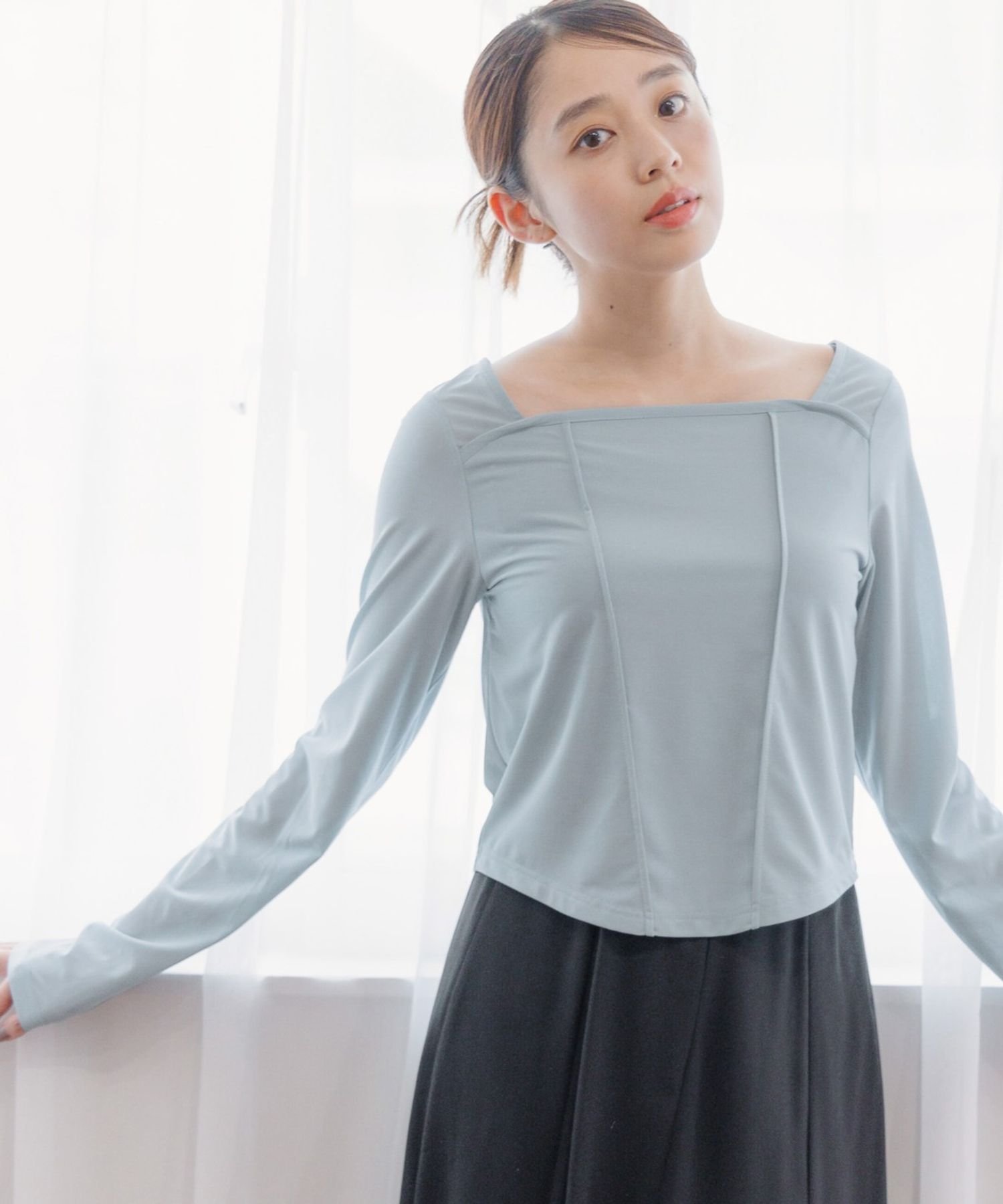 【SALE/60%OFF】mysty woman 切り替え2WAYインナープルオーバー ミスティウーマン トップス カットソー・Tシャツ グレー ブルー ブラック