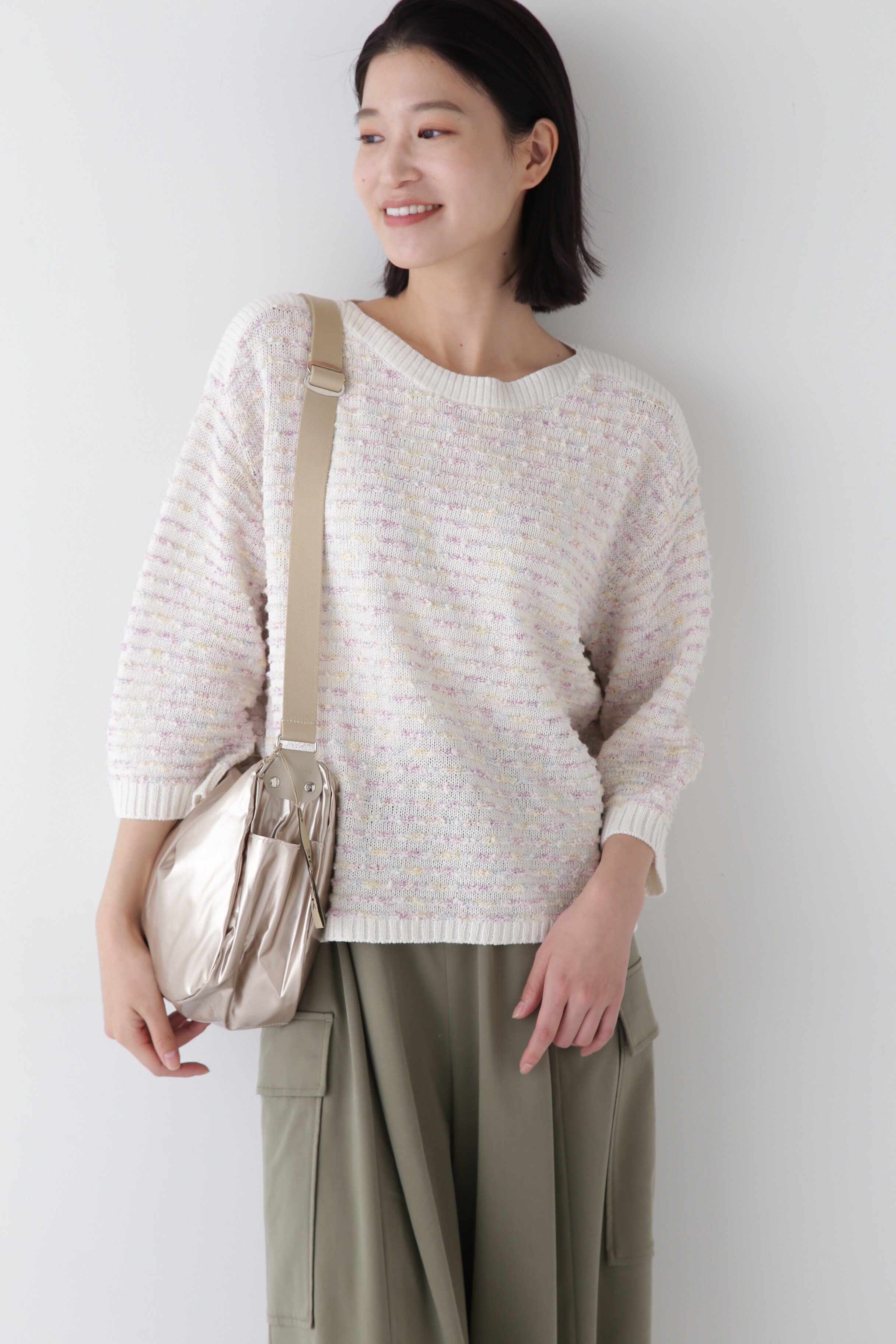 human woman(ヒューマン ウーマン)◆MIXヤーンガーターボーダープルオーバー多色感が楽しいボートネックプルオーバー【デザインのポイント】MIXヤーンとストレートヤーンをガーターに編み立ててボーダー見えにしたボートネックプルオーバー。7分袖で抜け感にある雰囲気に。またゆるく編むことで軽い仕上がりにしました。配色も楽しい見え方です。編地の特徴で着用すると着丈が5cmほど伸びます。【素材のポイント】柔らかい風合いが特徴です。ベーシックなカラー展開ですがMIXヤーンの他色感が遊びのある仕上がりです。【おすすめコーディネート】一枚で着映えするニットトップス。バランスの取りやすいボックスシルエットで、幅広いボトムと相性の良い一枚です。透け感/なし|裏地/なし|光沢/なし|生地の厚さ/普通|伸縮性/ややあり|シルエット/スタンダード型番:077-5170306-030-20 NH8811【採寸】M:バスト116cm、着丈48cm、ゆき丈58.5cm商品のサイズについて【商品詳細】中国製素材:コットン52%,麻40%,ナイロン5%,ポリエステル3%サイズ:M手洗い、ドライクリーニング※画面上と実物では多少色具合が異なって見える場合もございます。ご了承ください。商品のカラーについてhuman woman(ヒューマン ウーマン)◆MIXヤーンガーターボーダープルオーバー多色感が楽しいボートネックプルオーバー【デザインのポイント】MIXヤーンとストレートヤーンをガーターに編み立ててボーダー見えにしたボートネックプルオーバー。7分袖で抜け感にある雰囲気に。またゆるく編むことで軽い仕上がりにしました。配色も楽しい見え方です。編地の特徴で着用すると着丈が5cmほど伸びます。【素材のポイント】柔らかい風合いが特徴です。ベーシックなカラー展開ですがMIXヤーンの他色感が遊びのある仕上がりです。【おすすめコーディネート】一枚で着映えするニットトップス。バランスの取りやすいボックスシルエットで、幅広いボトムと相性の良い一枚です。透け感/なし|裏地/なし|光沢/なし|生地の厚さ/普通|伸縮性/ややあり|シルエット/スタンダード型番:077-5170306-030-20 NH8811【採寸】M:バスト116cm、着丈48cm、ゆき丈58.5cm商品のサイズについて【商品詳細】中国製素材:コットン52%,麻40%,ナイロン5%,ポリエステル3%サイズ:M手洗い、ドライクリーニング※画面上と実物では多少色具合が異なって見える場合もございます。ご了承ください。商品のカラーについて