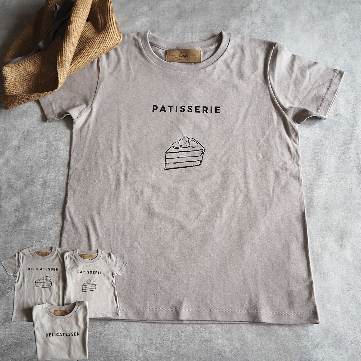 エプロンTシャツ グレー 【大人】 womens S~L, mens S~XLシンプル レディース メンズ プレゼント お揃い 親子お揃い 家族お揃い リンクコーデ シンプル ロゴ ケーキ チーズ コックさん コック帽 ケーキ屋さん デリカテッセン パティスリー