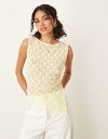【送料無料】 エイソス レディース Tシャツ トップス ASOS DESIGN ruched side asymmetric sleeveless sheer lace top in buttermilk Buttermilk