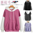 【送料無料】スウェットパーカー 裏起毛 プルオーバー パーカー 配色 レディース トップス 秋 冬 フーディー フード付き ゆったり 厚手 防寒 あたっか 学生 女子 中学生 高校生 可愛い カジュアル カンガルーポケット付き