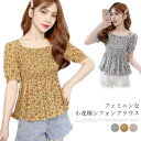 送料無料花柄ブラウス レディース ブラウス 半袖 フレアブラウス ボリュームスリーブ ボートネック シャーリング フレア リメイク風 シフォンブラウス 花柄 トップス プルオーバー お洒落 キレイめ 大人可愛い 夏物 夏新作