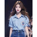 秋服 レディース ファッション オシャレ カワイイ シンプル 大人カワイイ 大きいサイズ フレンチ 半袖 ブルー 薄手 シャツ サマー トップス