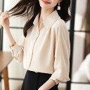 秋服 レディース ファッション オシャレ カワイイ シンプル 大人カワイイ 大きいサイズ ポロ 襟 七分袖 シフォン シャツ ゆったり シャツ トップス