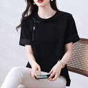 ファッション 服 オシャレ カワイイ シンプル 大カワイイ サイズ 婦服 ハイエンド タッセル ボタン T シャツ 半袖 夏 ラウンドネックプルオーバー トップス