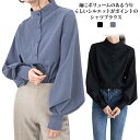 バルーン袖 バンドカラー シャツ ブラウス レディース ぽわん袖 スタンドカラー 長袖 トップス ボリューム袖 春 秋 可愛い カジュアル シンプル 無地 ホワイト オフィス きれいめ 上品 おしゃれ 黒 白 立ち襟 パフ袖 送料無料
