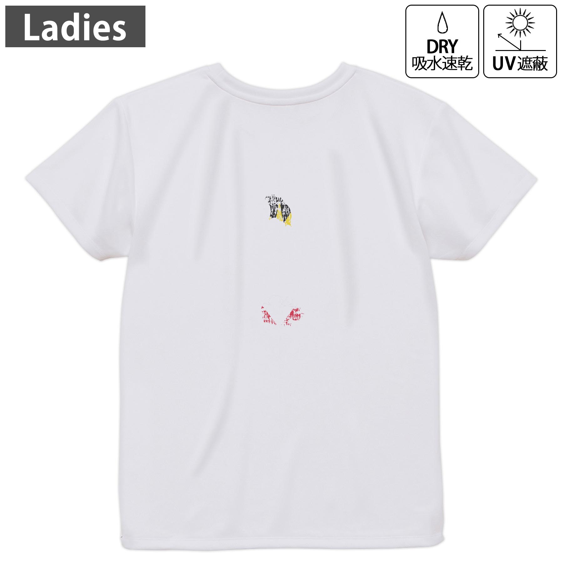レディース ドライTシャツ ホワイト 半袖 4.1オンス ジム トレーニング スポーツ 運動会 ドライアスレチック UVカット 紫外線遮蔽 吸水速乾 デザイン Tshirt M L▼レディース ドライTシャツ全デザインはこちらから▼ 商品特徴・4.1オンス ドライアスレチックTシャツ! ・吸水速乾・紫外線遮蔽・ポリエステル素材専用の転写プリントで染めるため、自然な仕上がりで、発色も鮮やかに。洗濯しても色褪せの心配がありません。 素材 ポリエステル 100% リバーシブルメッシュ 注意事項画像はサンプルですので、Tシャツの大きさが若干異なる場合があります。ご覧の環境によっては多少色味に違いを感じる場合がございます。 イメージと違った、モニターと色味が異なるという理由での交換や返金はご対応出来かねます。 写真のカラーは可能な限り実際の商品に色味を近づけていますが、WEBの性質上ご使用のパソコンの設定や環境でカラーが若干異なります。 ご注文後に1点1点制作する受注生産品のため、不良品以外のご返品や交換は固くお断り致します。 機種の選択間違いも保証対象外となりますため、ご注文の際は必ず機種をご確認下さい。発送について完全受注生産のハンドメイド商品となりますので、既製品と比べて発送までお時間を頂いています。 基本的に決済確認後、最大で10営業日での発送となります。繁忙期や休業日明けの場合はさらに時間がかかる場合があります。 その際には別途メールにてご連絡致します。メール便の場合、発送日から到着までに2?4日ほどかかる場合が多く、紛失などの保障もご対応できかねます。あらかじめご了承下さい。