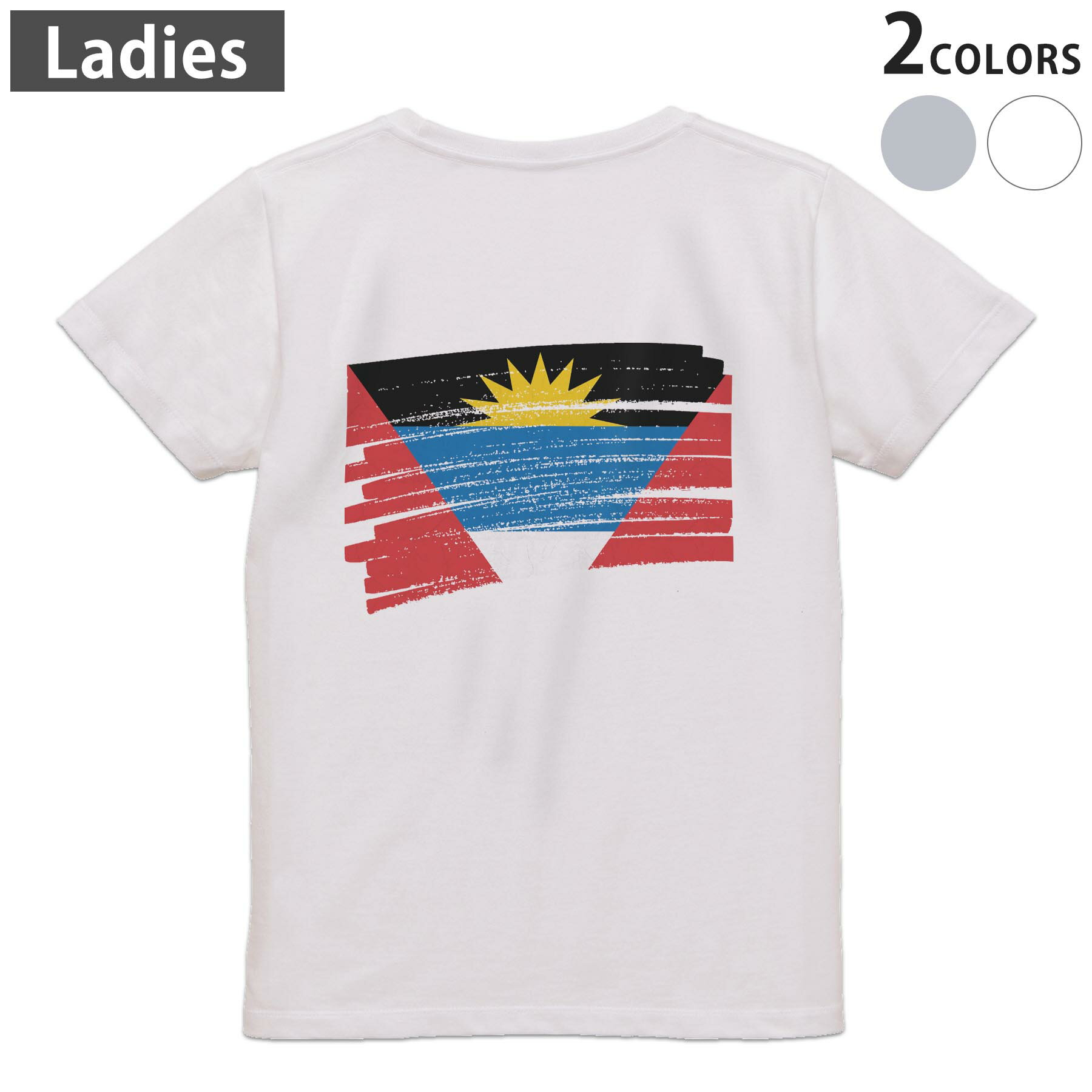 tシャツ レディース 半袖 白地 デザイン M L 白 ホワイト グレー Tシャツ ティーシャツ T shirt 018384 国旗 antigua-&-barbuda アンティグアバーブーダ
