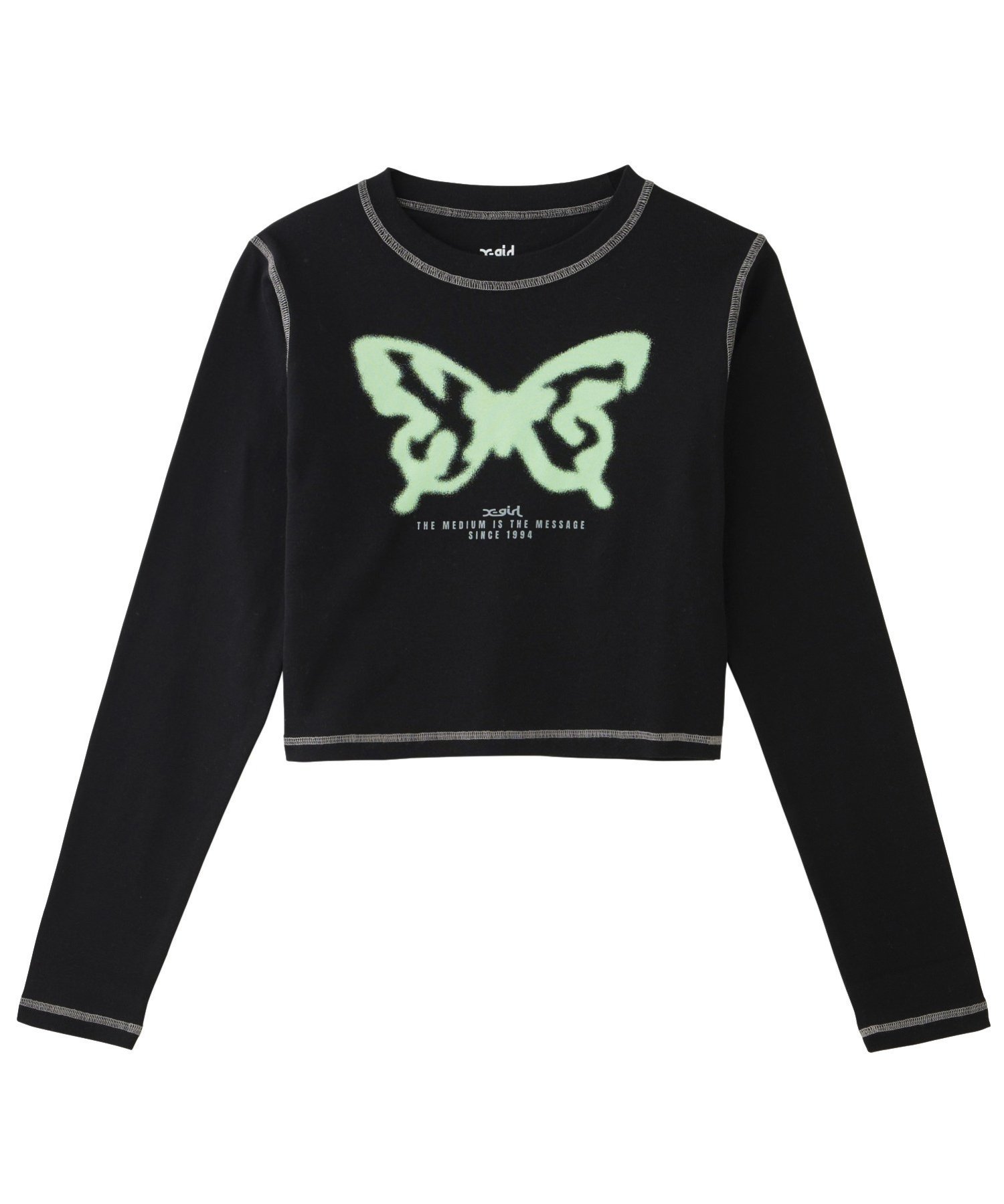 【SALE/30%OFF】X-girl SPRAY BUTTERFLY PRINT L/S BABY TEE エックスガール トップス カットソー・Tシャツ ホワイト ブラック ブラウン【送料無料】