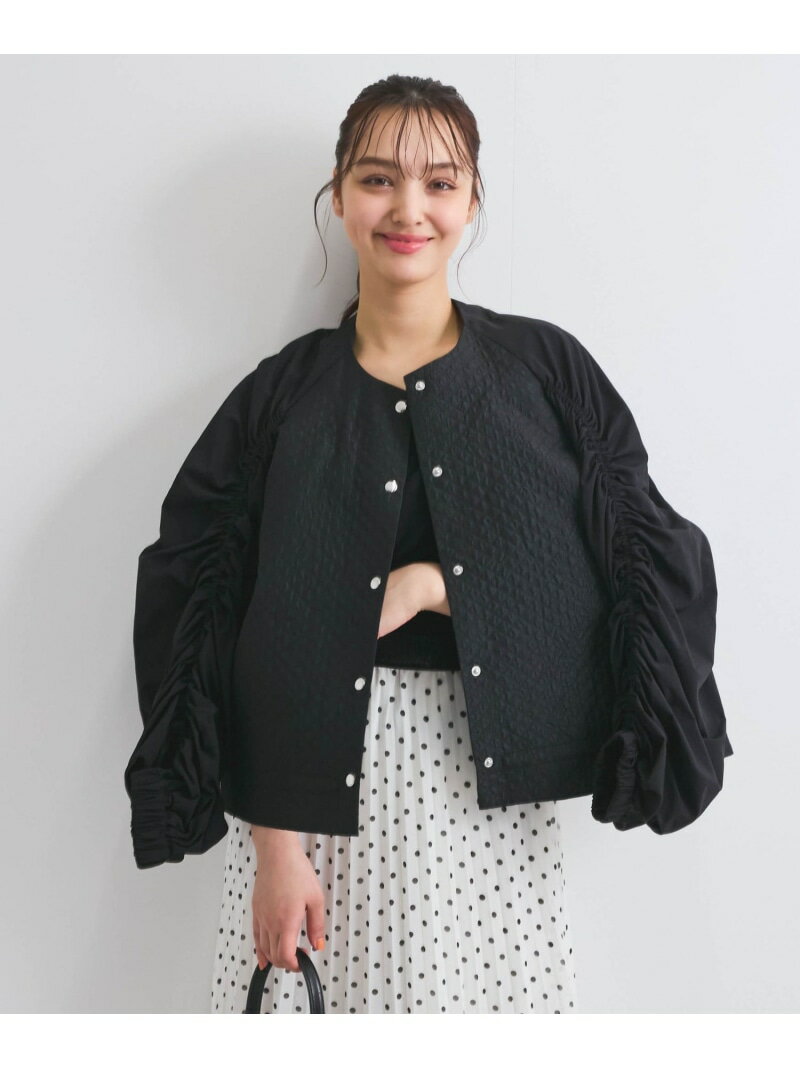 【SALE/50%OFF】シャーリングスリーブ切替ブルゾン≪洗濯機で洗える≫ QUEENS COURT クイーンズコート ジャケット・アウター テーラードジャケット・ブレザー ブラック ホワイト【RBA_E】【送料無料】[Rakuten Fashion]