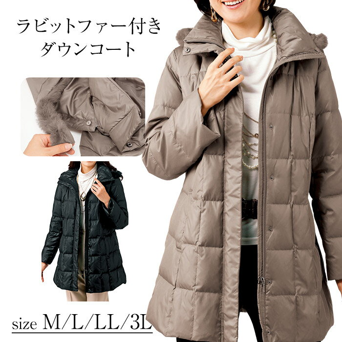 【1月24日-29日限定★ポイント5倍】 ラビットファー付きダウンコート 軽量 M L LL 3L 大きいサイズ ダウンコート フード 上品 トップス アウター 秋 冬 ミセス レディース ファッション フェザー フェザー入り ポケット フード付き ピンク ローズ