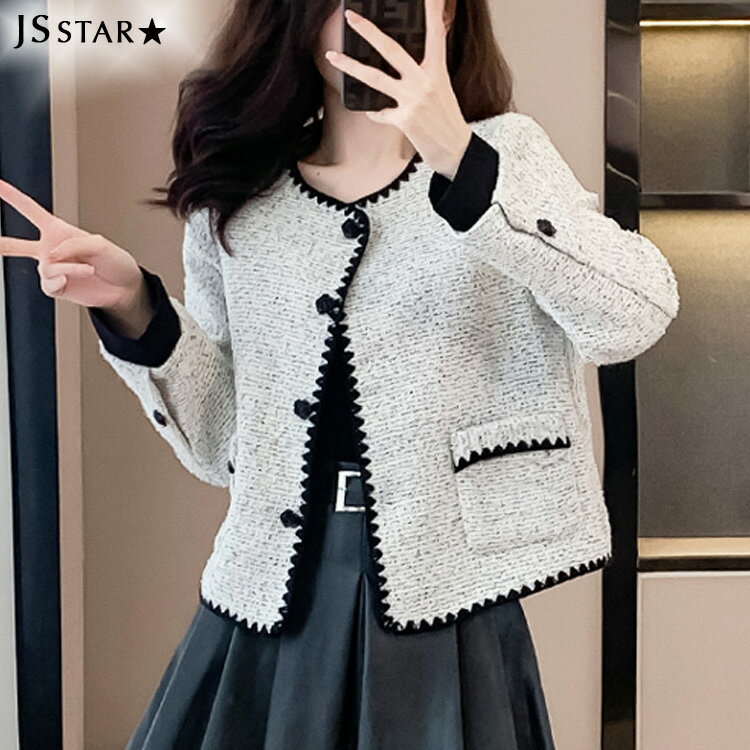 【FINAL ONE】ツイードジャケット 薔薇ボタン ノーカラージャケット 長袖 オフィス ジャケット 春アウター 秋アウター 大人 きれいめ おしゃれ 上品 フォーマル セレモニー ママスーツ 卒業式 入学式 ビジネス 通勤 成人式 二次会 春秋冬ypy8310249