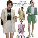 レディース セットアップ スーツ 薄手 五分袖 ジャケット パンツ ショートパンツ 半袖 上下セット 夏 ショート丈 アウター テーラードジャケット ワイドパンツ ゆったり パンツ 春 スラックスパンツ 無地 大きいサイズ きれいめ オフィス カジュアル ワイドパンツ