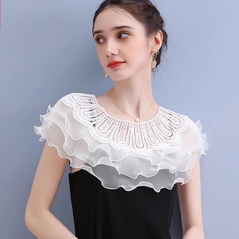 付け襟 レディース おしゃれ ホワイト フリル レース 刺繍 リボン 韓国 ショートケープ フェミニン アクセサリー ブラウス風 装飾 重ね着 かわいい