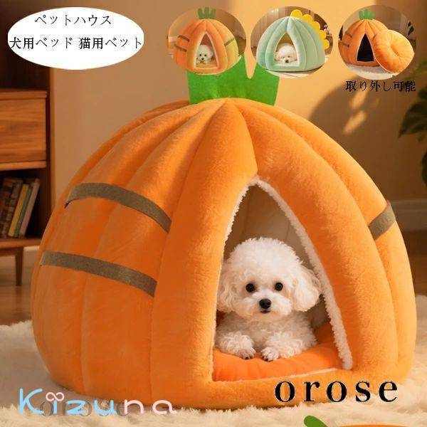 送料無料 ペットハウス かわいい ドーム型 犬用ベッド 猫用ベット あったかい 犬小屋 秋冬 ぐっすり眠れる 寝床 暖かい ふわふわ 犬猫ベッド 洗える 耐久性 小型犬 ドッグベッド 休憩所 遊び場 冬用 暖かい巣 取り外し可能ハウス ペット用品 寒さ対策 オレンジ グリーン