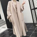 【P2倍&クーポン有】ウエストマーク ウエストリボン レディース コート アウター 上着 羽織 前開き ロングコート ロング 9分丈 丈長 長袖 萌袖 Vネック 襟付き ステンカラー ストレート Iライン スマート 立体感 リボン ベルト オフホワイト ブラック レッ