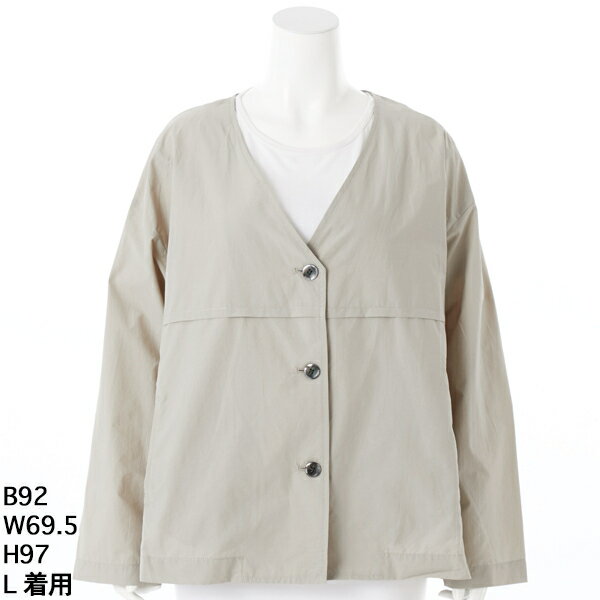 [型番:5708000]軽く柔らかいコットンナイロンブロードを使用。裏無しの一枚仕立てで、とっても軽い仕上がりです。ノーカラーのVネックでカーデの様にさっと羽織れる便利品です。後ろウエスト部分のみドロスト入りなので軽く絞るとスッキリとした印象になります。【ショップお気に入り登録】登録していただくと〈新作商品〉〈再入荷お知らせ〉〈お買い得情報〉の通知がいきますので、是非ご登録をお願い致します。■カラー:スモークピンク、グレーサイズバスト着丈二の腕幅ゆき丈袖口幅裾幅L122.065.124.081.714.168.6LL129.867.124.584.615.871.7※( )で表記されている数字はヌードサイズです。ヌードサイズとは衣服を身につけない身体のサイズです。お客様ご自身の身体サイズと比較してお選びください。 ■素材: 綿56% ナイロン44% ■お手入: 洗濯機・ドライ >>商品のお取り扱い方法 ■原産国: 中国製コットンナイロンブロードブルゾン【グリーンノート】【大きいサイズ】【L・LL】/グリーンノート(gree*n[nout])スモークピンクグレー画面上と実物では、多少色具合が異なって見える場合がございます。