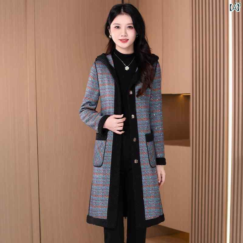 レディース レディース ファッション 上品 オシャレ 綺麗 ウール ジャケット ホット 秋冬 ミドル丈 ブロード レディ ウエスタン ママ リトル フレグランス