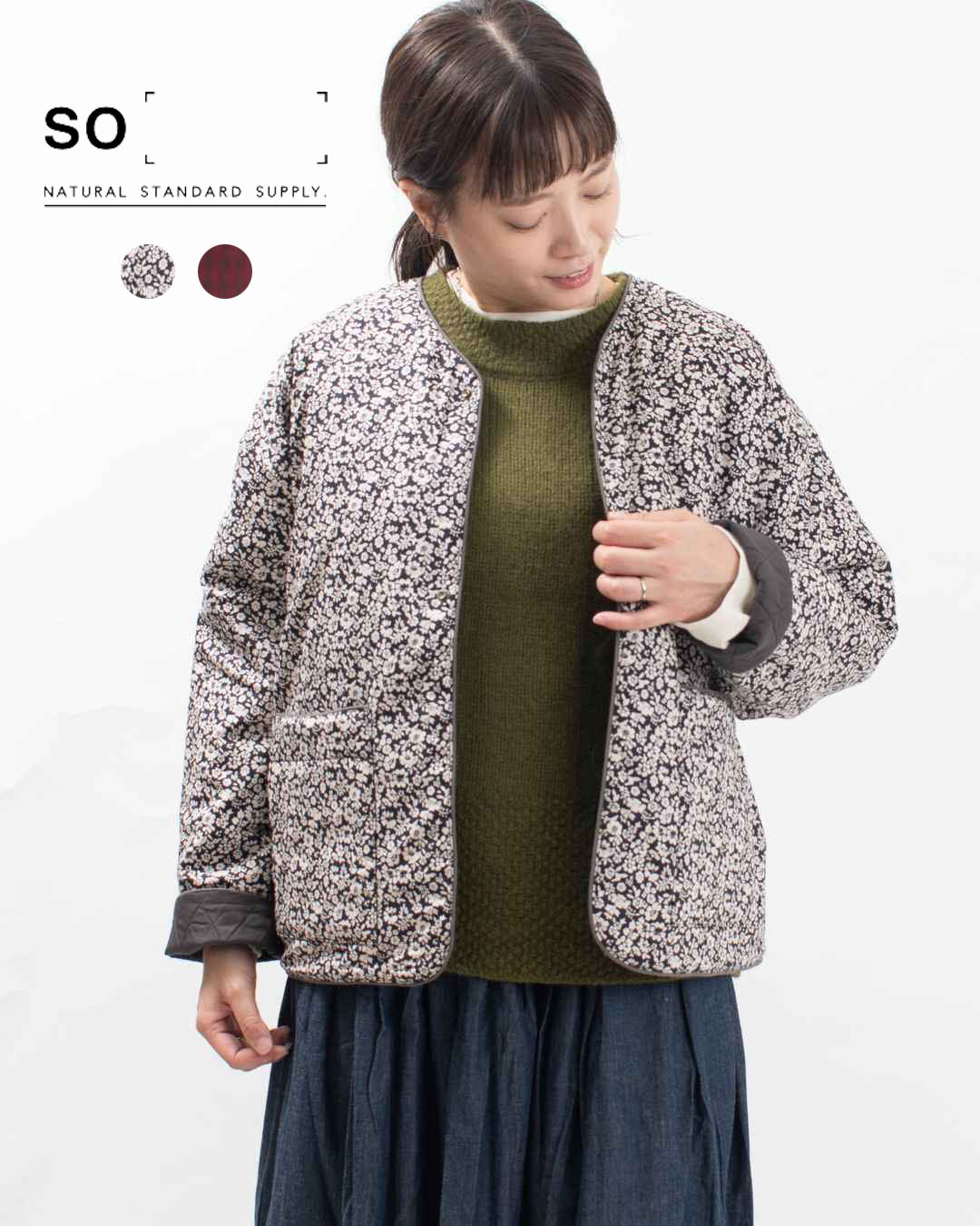 【クーポン対象商品】SO[ ] エスオー 40sブロードクロスソフト仕上げ リバーシブルキルトジャケット SB-1846 レディース アウター 冬 キルティングブルゾン 軽い アウター ナチュラル 30代 40代 50代ファッション 大人 カジュアル