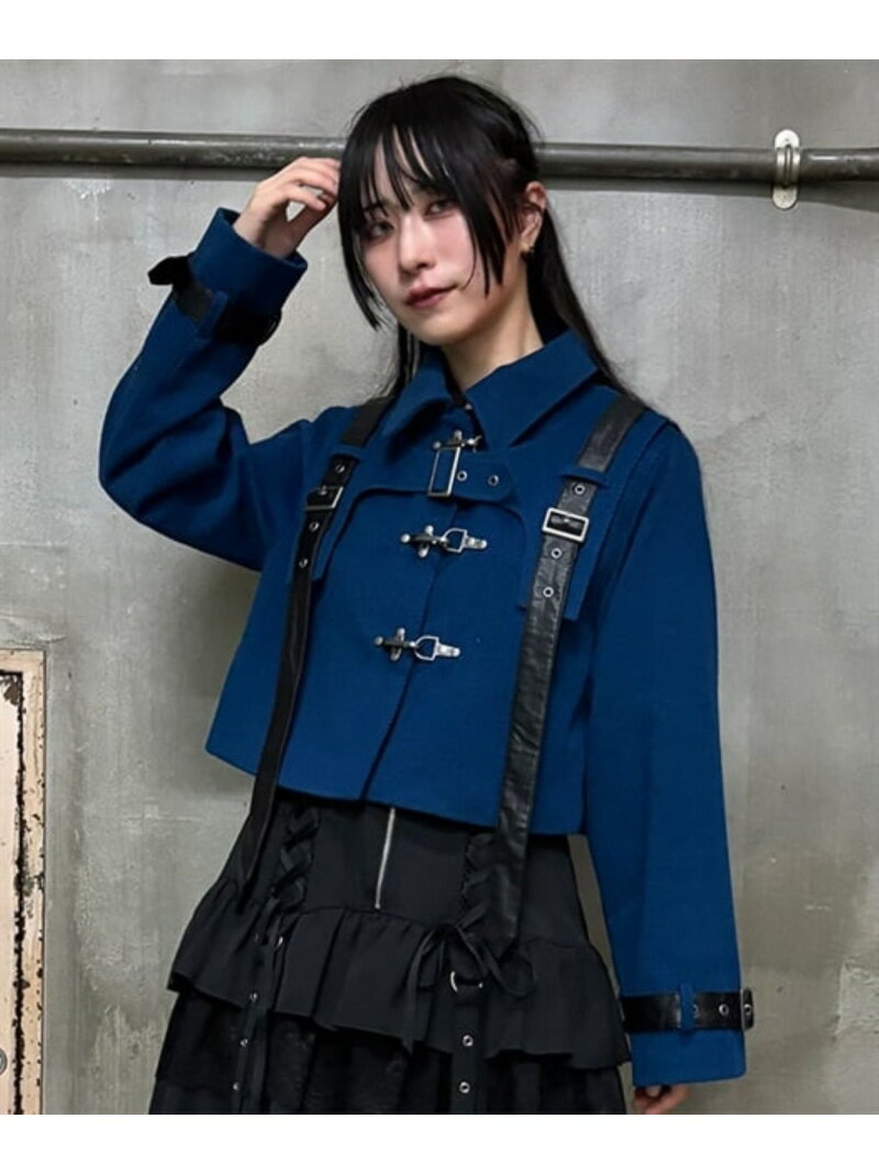 axes femme POETIQUE ハーネスショートコート アクシーズファム ジャケット・アウター その他のジャケット・アウター グレー ブルー【送料無料】