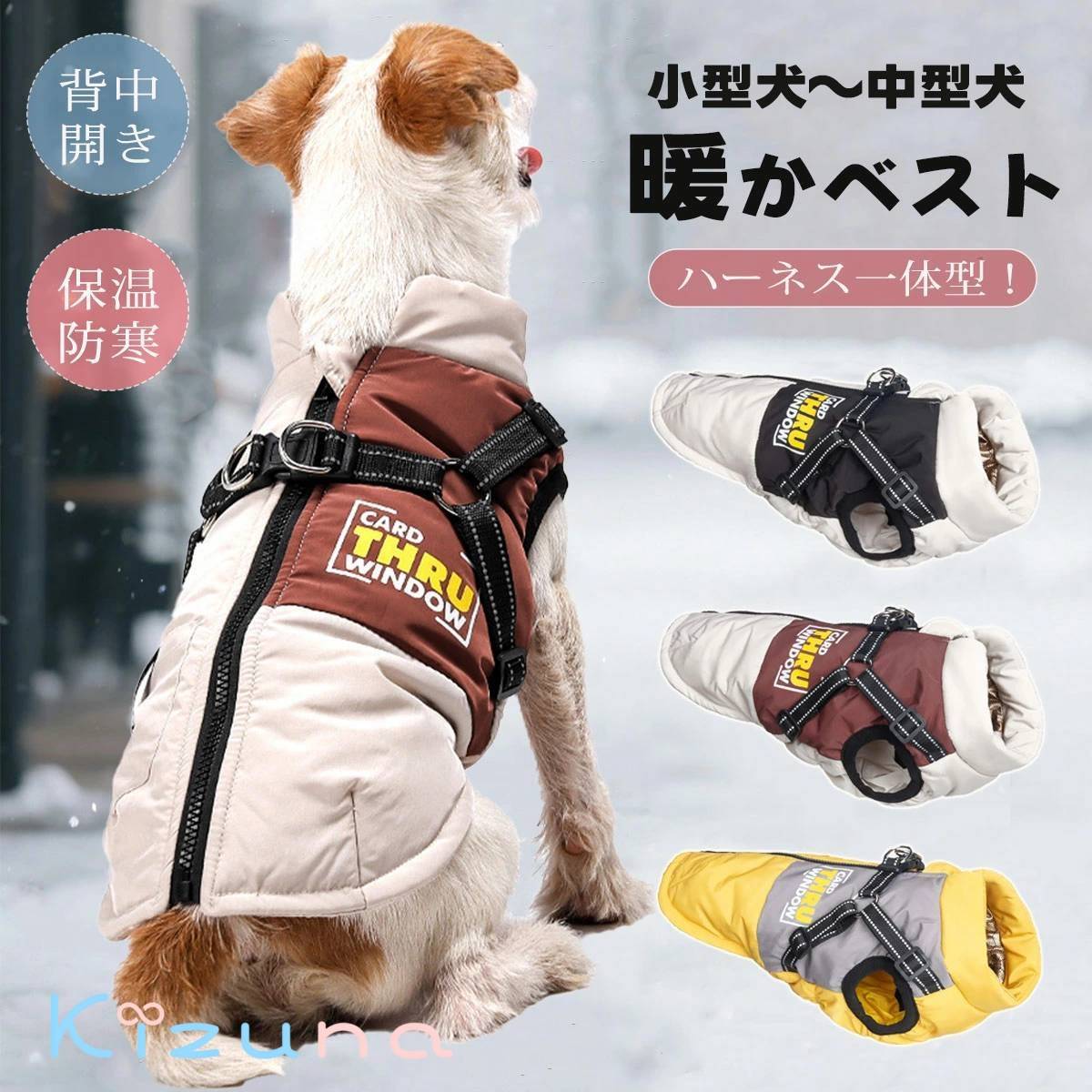 犬用 ジャケット 暖かい ハーネス一体型 おしゃれ 寒さ対策 アウター 中綿 コート 冬 防寒 防風 つなぎ 蓄熱 保温 ドッグウェア 犬服 撥水 ペット服 猫 可愛い 小型犬 中型犬 お出かけ お散歩 前開き 着脱簡単 記念写真 撮影