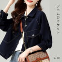 デニムジャケット レディース Gジャン ライトアウター 大きいサイズ「大人女子の定番」 羽織 長袖 ショートジャケット 襟付き スプリングコート ストレッチ ネイビー 無地 体型カバー オシャレウォーカー S〜2XL