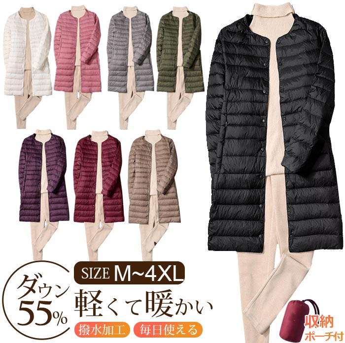 ダウンコート レディース きれいめ ウン ジャケット 大きいサイズ コート 50代 ロング ダ 暖かいカジュアル きれいめ 防寒 軽量 uネック スタンドカラー あたたっか 冬 防風 柔らかい あったか 冬物 無地 全8色 M-4XL