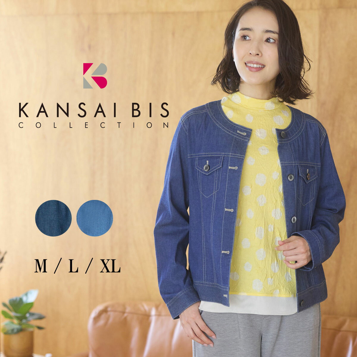 商品情報品名 : ビースティデニムジャケット 定番デニムジャケットは春の羽織りとして大活躍デザインが女性らしいノーカラーのデニムジャケット。見た目はデニムの風合いを再現しながら、ストレッチが効いた快適な着心地を実現。春先の羽織りにはもちろん、寒さの残る時期にはアウターインに着ていただくのも◎ロングシーズン着回せるアイテムです。【ブランド】KANSAI BIS【サイズ】【M】身幅:45.5 肩幅:40 袖丈:55.5 前着丈:54 後着丈:52【L】身幅:48 肩幅:41 袖丈:55.5 前着丈:55.5 後着丈:53【XL】身幅:50.5 肩幅:42.5 袖丈:55.5 前着丈:56 後着丈:54【素材】綿98% ポリウレタン2%【原産国】中国【モデル着用サイズ】モデル/身長:171cm 着用サイズ:M【item No.】11514001elife イーライフ レディース ファッション レディースファッション 婦人服 ミセス ミセスファッション シニア シニアファッション アウトレット ブランド ミセスブランド 60代ファッション 70代ファッション 落ち感 抜け感 クラシック エレガント カジュアル ベーシック ナチュラル おしゃれ オシャレ 可愛い かわいい きれいめ キレイめ 大人 オトナ 上品 シンプル フェミニン 女性らしい 女性 大人 オトナ 高級感 高見え 楽 楽ちん 楽チン 快適 着心地抜群 リラックス ノンストレス ノーストレス ストレスフリー 動きやすい 歩きやすい シルエット 素材 着回し 着回し力 スタイルアップ 華奢見え 着痩せ効果 細見え効果 すっきり すっきり見え 脚長効果 ウエストシェイプ くびれ 細見え 二の腕細見え 軽い シワになりにくい 洗濯可 UV 紫外線 接触冷感 クール COOL オケージョン 入園 入学 卒園 卒業 式 フォーマル セレモニー 通勤 オフィス オフィスカジュアル デイリー ワンマイル ワンマイルコーデ お出掛け ママ服 40 50 60 70 40代 50代 60代 70代 レディースファッション 大きいサイズ 小さいサイズ 大きい 小さい S M L LL サイズ Sサイズ Mサイズ Lサイズ LLサイズ 低身長向け 高身長向け 大きめサイズ 小さめサイズ 大きめ 小さめ ゆったり 体型カバー オーバーサイズ ビッグシルエット 春 夏 秋 冬 SS AW 春夏 秋冬 オールシーズン 新作 新着 NEW 秋 秋服 秋物 冬 冬服 冬物 春 春服 春物 夏 夏服 夏物 22夏 2024春 2024夏 24春 24夏 24夏新着 2024SS 2024新作 25春 25夏 2025春 2025夏 2025SS 2025新作 セール SALE アウトレット 涼しい サラサラ さらさら 綿 トレンド トレンドカラー 白 ホワイト 黒 ブラック 楽天ROOM 楽天ルーム 楽天スーパーセール 楽天SUPERSALE スーパーセール 楽天お買い物マラソン お買い物マラソン