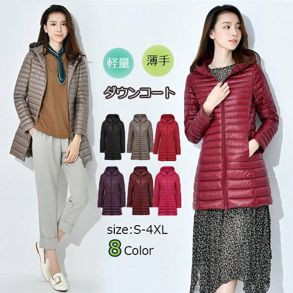 全12色 ダウンコートレディース ロング きれいめ 人気 大きいサイズ ダウンジャケット ミドル丈 フード付き ライトダウン キルティング アウター 上品 防寒 秋冬 軽量 通勤 きれいめ 体型カバー 細見え M L XL 2XL 3XL 4XL 5XL 6XL 7XL dv024z7z7zb