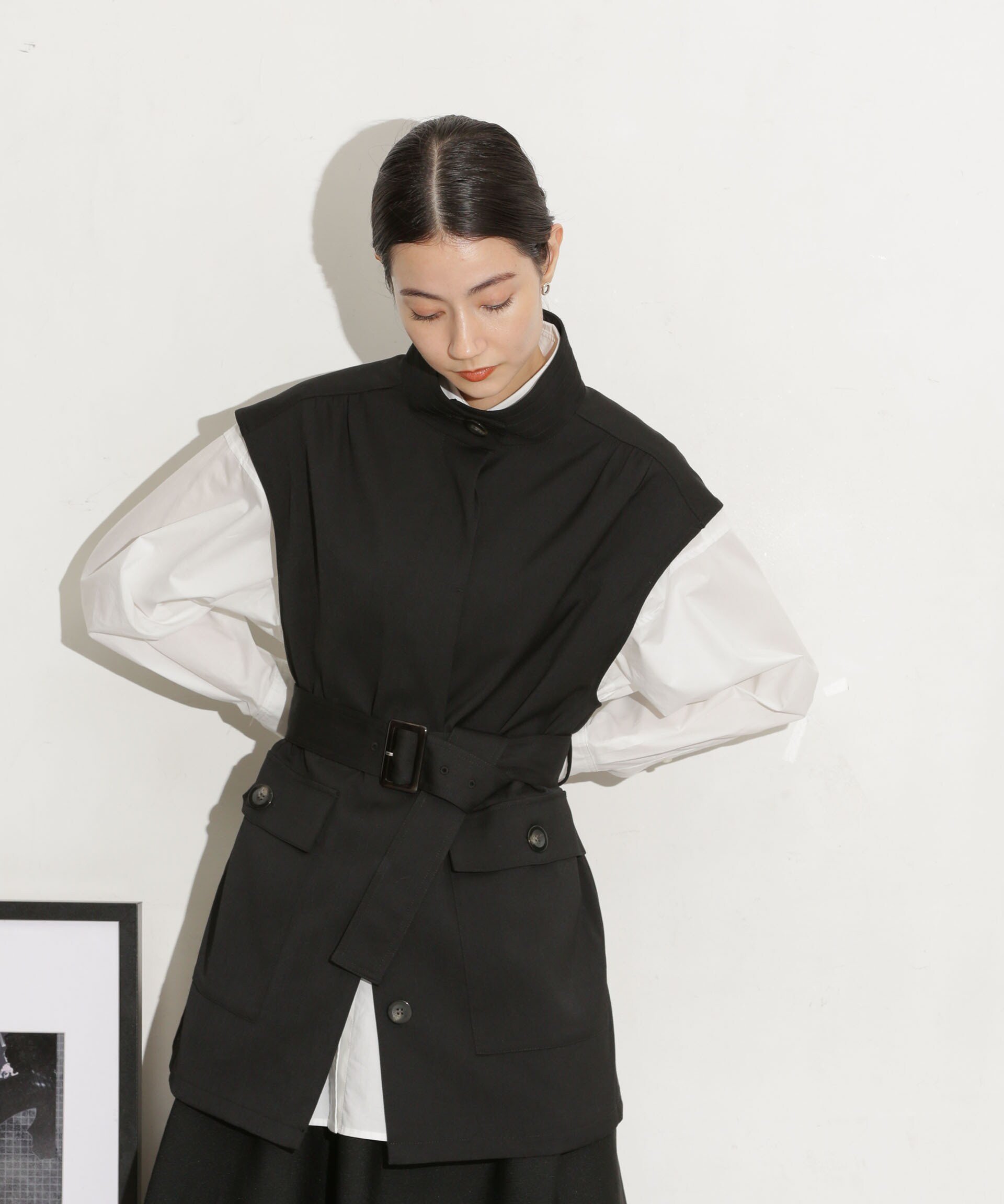 【SALE/60%OFF】NANO universe ベルト付きスタンドベスト ナノユニバース ジャケット・アウター その他のジャケット・アウター ベージュ ブラック【送料無料】