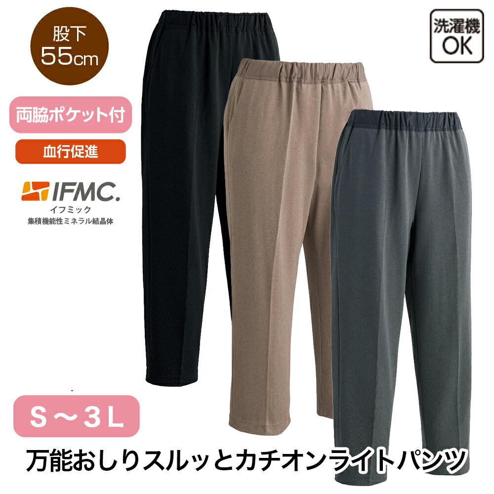 万能おしりスルッとカチオンライトパンツ S M L LL 3L 着るサプIFMC. W01800567 パンツ ズボン ボトムス のびのび 履きやすい はきやすい 洗える 洗濯機OK ポケット付 イフミック 楽 血行促進 介護 シニア 年配 杉山ケアファッション