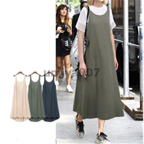 ジャンパースカート 春 ワンピース レディース ロングワンピース 綿 サロペットスカート ジャンスカ ノースリーブ ワンピース コットン ワンピース 重ね着 レイヤード ロングワンピ ミモレ丈 大人可愛い おしゃれ 無地 きれいめ 着痩せ 春 夏 送料無料