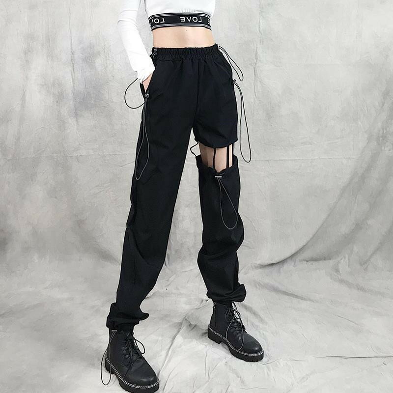 レディース ダンス衣装 ジョガーパンツ 衣装 カーゴパンツ ストリート系 原宿系 ロング丈 ヒップホップ ダメーパンツ ダンスウェア ヒップホップ衣装 ボトムス カジュアル 長ズボン イージーパンツ ウエストゴム かっこいい スポーツ ダンス 透かし彫り