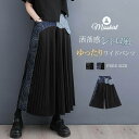 パンツ ワイドパンツ レディース パンツドレス ロング ワイド パンツ 綿 薄手 デニム 切り替え プリント ガウチョパンツ デザイン感 プリーツ ボトムズ ハイウエスト 体型カバー レトロ 春 夏 着回し 着痩せ 美脚 おしゃれ カジュアル 通勤 OL オフィス 大人 送料無料