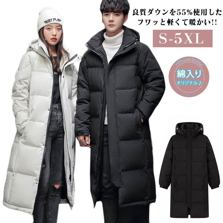 メンズ お揃い カップル レディース 男女兼用ダウンジャケット 暖かい ロング丈 中綿ダウンコート フード付き 厚手 防寒着 保温 通勤 軽量 OL 通学 防風 冬服 アウター人気単品売り