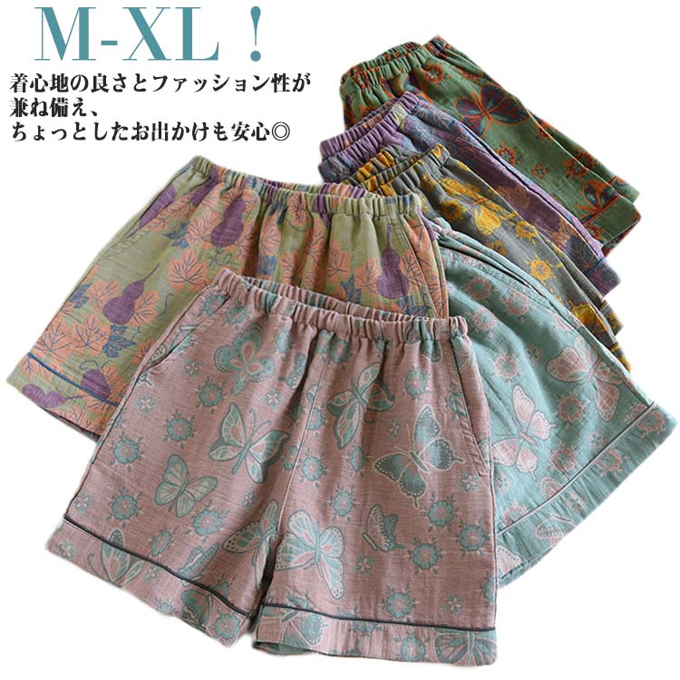 M-XL!着心地の良さとファッション性が兼ね備え、ちょっとしたお出かけも安心◎ふんわり柔らかな着心地は、おやすみ時やお部屋で過ごすリラックスタイムにピッタリ。洗えば洗うほど、ダブルガーゼがふわふわ柔らかになり、着心地がアップ◎暑い季節は汗をよく吸い、肌寒い時にはふわっと暖かいから、オールシーズン大活躍。小物を入れやすい両サイドポケットも完備し、とても便利。 サイズ M L XL サイズについての説明 【M】ウェスト60-90cm ヒップ102cm 股上26cm 着丈35cm 裾幅60cm おすすめ体重40-52.5kg【L】ウェスト64-95cm ヒップ106cm 股上27cm 着丈36cm 裾幅62cm おすすめ体重52.5-62.5kg【XL】ウェスト68-100cm ヒップ108cm 股上28cm 着丈37cm 裾幅64cm おすすめ体重62.5-72.5kg※サイズ表の実寸法は商品によって1-3cm程度の誤差がある場合がございます。 素材 綿 色 パープル ブルー グリーン1 ピンク ライトブルー グリーン2 グレー 備考 ●サイズ詳細等の測り方はスタッフ間で統一、徹底はしておりますが、実寸は商品によって若干の誤差(1cm~3cm )がある場合がございますので、予めご了承ください。 ●製造ロットにより、細部形状の違いや、同色でも色味に多少の誤差が生じます。 ●パッケージは改良のため予告なく仕様を変更する場合があります。 ▼商品の色は、撮影時の光や、お客様のモニターの色具合などにより、実際の商品と異なる場合がございます。あらかじめ、ご了承ください。 ▼生地の特性上、やや匂いが強く感じられるものもございます。数日のご使用や陰干しなどで気になる匂いはほとんど感じられなくなります。 ▼同じ商品でも生産時期により形やサイズ、カラーに多少の誤差が生じる場合もございます。 ▼他店舗でも在庫を共有して販売をしている為、受注後欠品となる場合もございます。予め、ご了承お願い申し上げます。 ▼出荷前に全て検品を行っておりますが、万が一商品に不具合があった場合は、お問い合わせフォームまたはメールよりご連絡頂けます様お願い申し上げます。速やかに対応致しますのでご安心ください。
