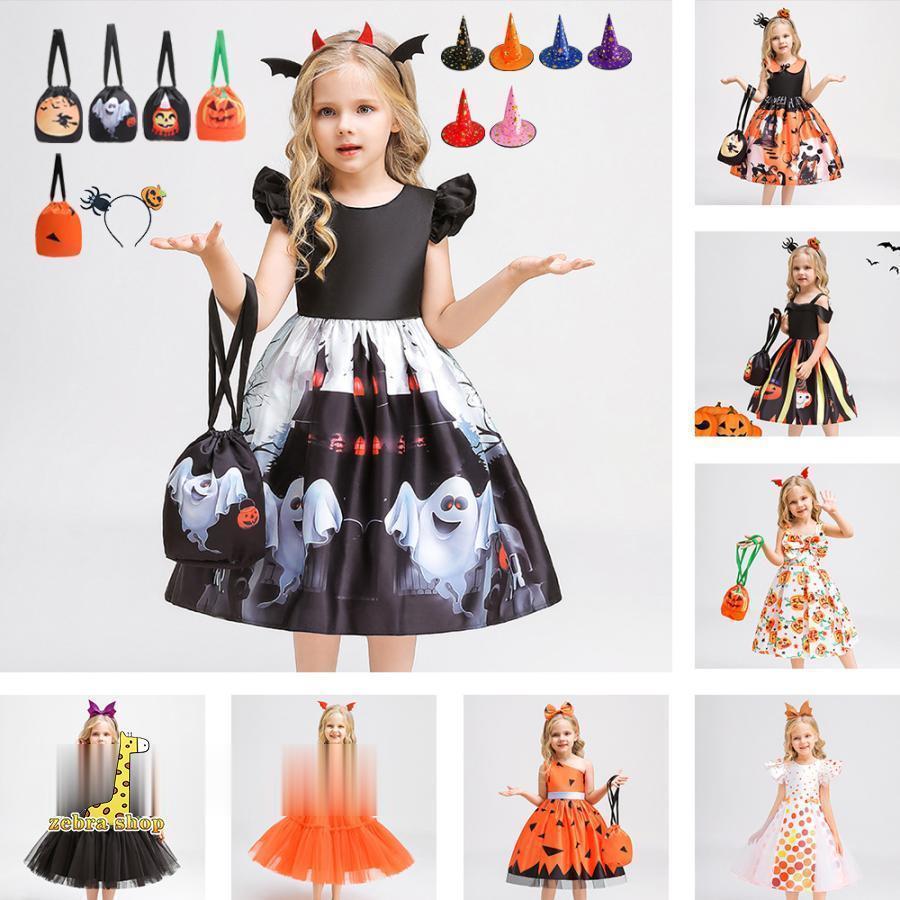 ハロウィン 衣装 子供服 ワンピース 女の子 コスプレ 仮装 魔女 コスチューム ジュニア 演劇 お菓子入れ付き 帽子 イベント 学園祭 パーティー 万聖節 演出服