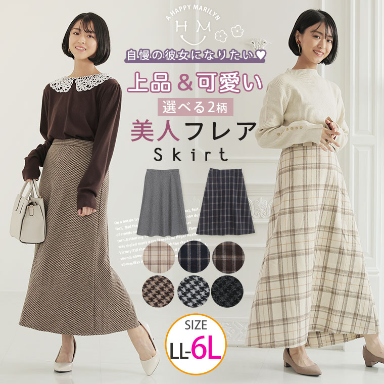 【期間限定クーポン配布】 大きいサイズレディース スカート | 2種類の チェック から選べる 優秀 フレアスカート _ ボトムス LL 3L 4L 5L 6L 秋 秋物 秋服 冬 冬物 冬服 ぽっちゃり ゆったり シーン別 カジュアル ナチュラル プラスサイズ [145 425019/145 425020]