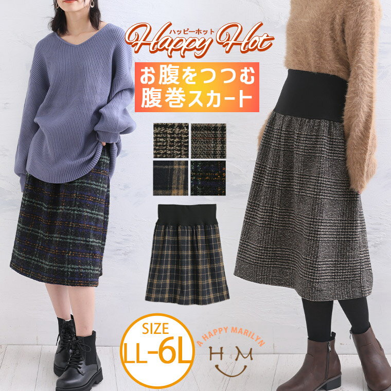 【期間限定クーポン配布】 大きいサイズレディース スカート | ハッピーホット あったか楽ちん お腹リブ チェックスカート _ ボトムス フレアスカート LL 3L 4L 5L 6L 冬 冬物 冬服 ぽっちゃり ゆったり 温活 はらまき 冷え対策 冷え性 プラスサイズ [145 435045]