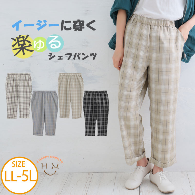 【期間限定クーポン配布】 大きいサイズレディース パンツ | ハッピーカラー うす軽 ちょいゆる チェックパンツ _ カラーパンツ ボトムス LL 3L 4L 5L 春 春物 春服 夏 夏物 夏服 ぽっちゃり ゆったり お腹 太もも お尻 腰周り カジュアル プラスサイズ [145 443016]