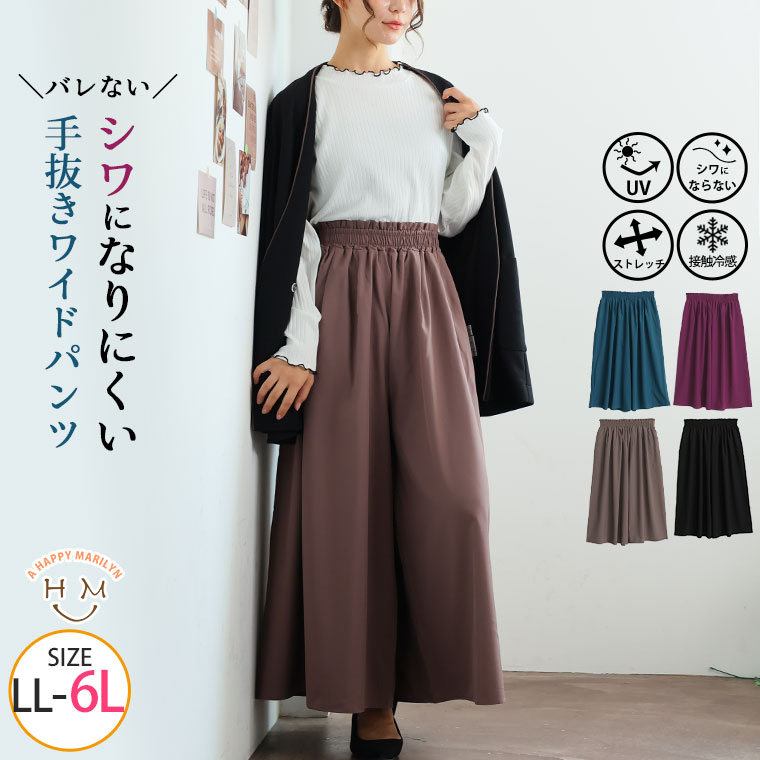 大きいサイズ レディース パンツ | 新色追加!! 綺麗が続く!お腹すっきり魅せ! 楽して 美脚 カットジョーゼット シャーリング ワイドパンツ _ ボトムス ルーズパンツ LL 3L 4L 5L 6L 夏 夏物 夏服 夏用 ぽっちゃり ゆったり [145 654015]