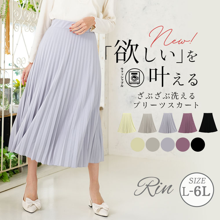 【期間限定クーポン配布】 大きいサイズ レディース スカート | Rin ざぶざぶ洗える! アコーディオン プリーツスカート _ ボトムス LL 3L 4L 5L 6L 春 春物 春服 夏 夏物 夏服 ぽっちゃり ゆったり プラスサイズ オフィス 大人 着やせ 体型カバー [145 451006]