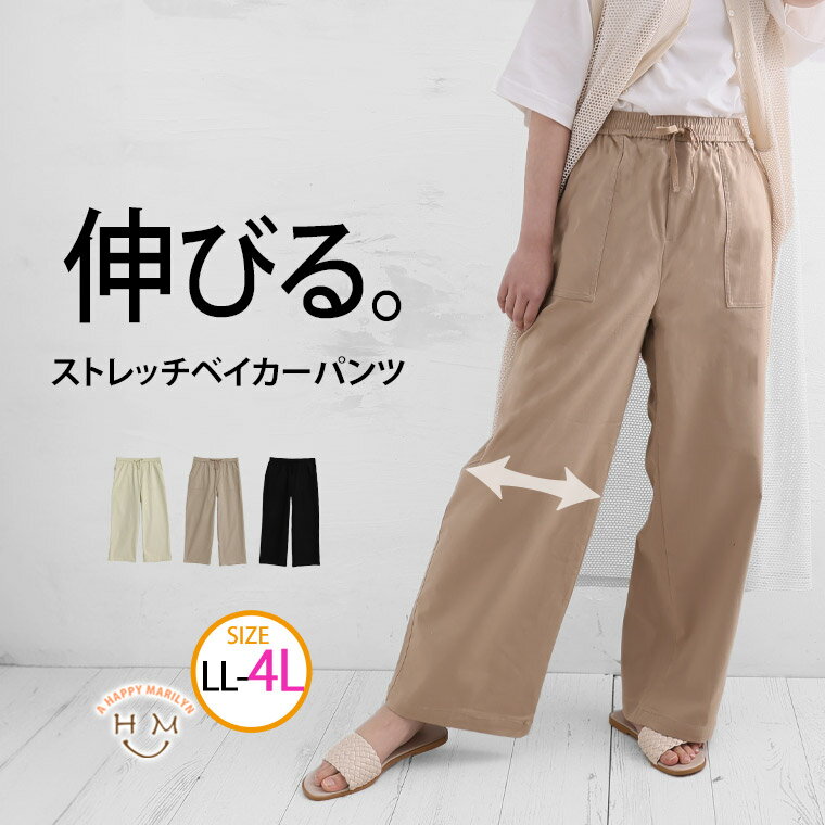 【期間限定クーポン配布】 大きいサイズ レディース パンツ | 綿混 スーパーストレッチ ベイカーパンツ _ ボトムス ベイカーパンツ LL 3L 4L 春 春物 春服 夏 夏物 夏服 ぽっちゃり ゆったり プラスサイズ かわいい おしゃれ カジュアル ナチュラル [145 653016]